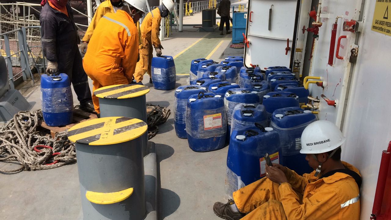 Aquatuff high foam supplier in Hazira, Surat - Gujarat. Aquatuff high foam is classified alkaline degreasing ship hold bulk carrier cleaner. Its high foam cleaning action with the high-pressure machine is helpful to clean the vertical surface of Ship Hold. We are keeping ready stock of Aquatuff in 25, 50, 210 Ltrs packing at our Kim, SURAT. Ready stock of materials helps to fulfil our regular customer demand at HAZIRA PORT. Shipchandler and ship supplier of SURAT and other ports ship chandler also getting the direct benefit and saves there time to complete supply in short period.